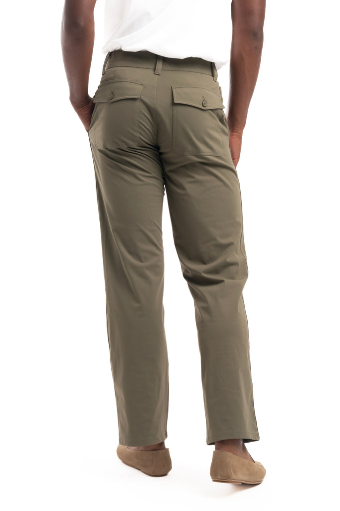 Un pantalón pensado para acompañarte todos los días con estilo y comodidad. Confeccionado en una tela ligera, duradera y transpirable, ofrece libertad de movimiento sin perder estructura. Su diseño de corte recto con bolsillos traseros de solapa y doble botón frontal lo convierten en un básico versátil, ideal para combinar con camisas o sobrecamisas en tonos neutros.
